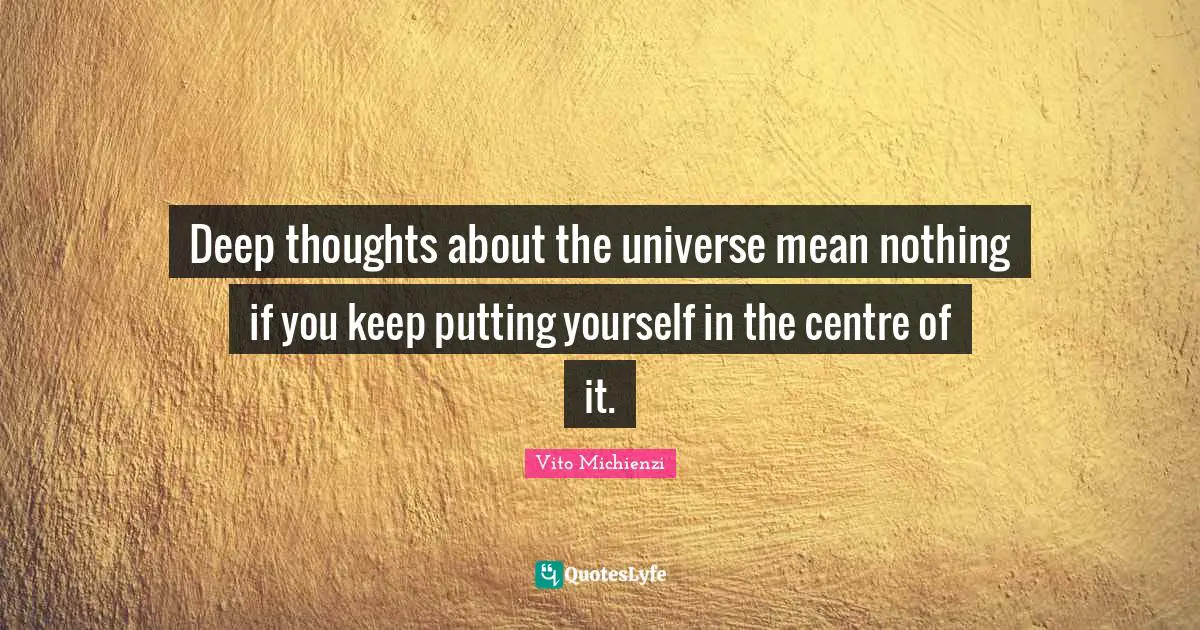 And thats the theory. 6 Cliche Pieces Of Advice That We Need To Retire Once And For All. Inspirational Journal - This beautiful blank lined journal will be a good choice for her to record thoughts and ideas. Im deeper then you th. The universe is big its vast and complicated and ridiculous. She can also use it as a travel journal planner to-do list goal setting etc. Download or share this Vito Michienzi quote with your friends on facebook linkedin whatsapp twitter and on other social media.