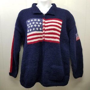 Vintage 90s Perry Ellis American Flag Cotton Knit Sweater Medium.